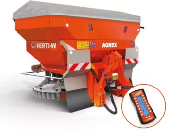 Mineraldüngerstreuer mit integriertem Wiegesystem für präzise und gleichmäßige Ausbringung von Dünger auf landwirtschaftlichen Flächen.