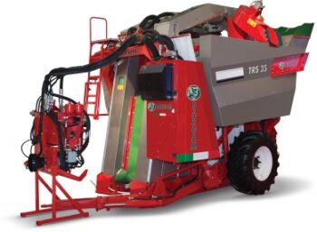 Gezogener Traubenvollernter für den Einsatz im Weinbau zur effizienten und schonenden Ernte von Trauben.